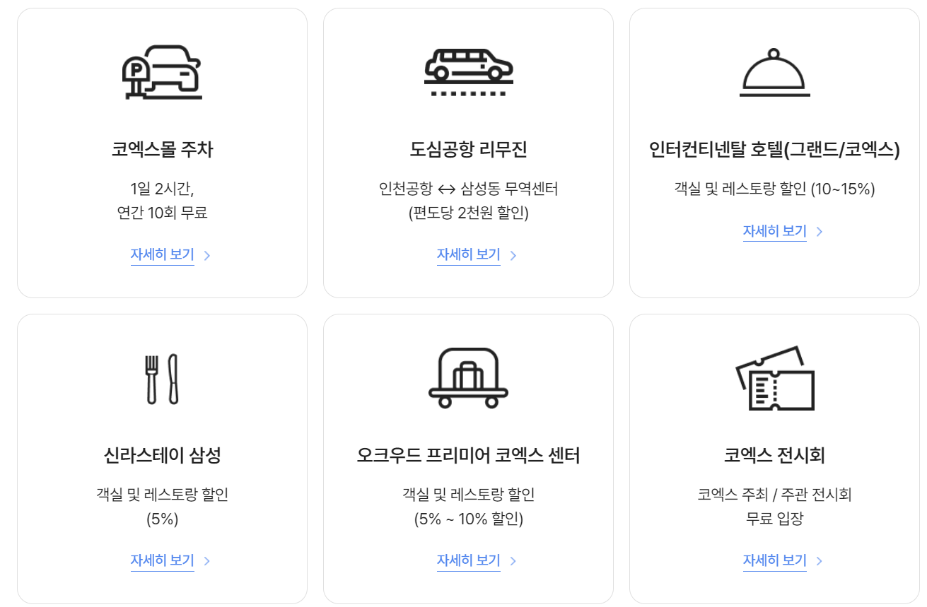 - 주차, 호텔 등 무역센터 이용할인 혜택